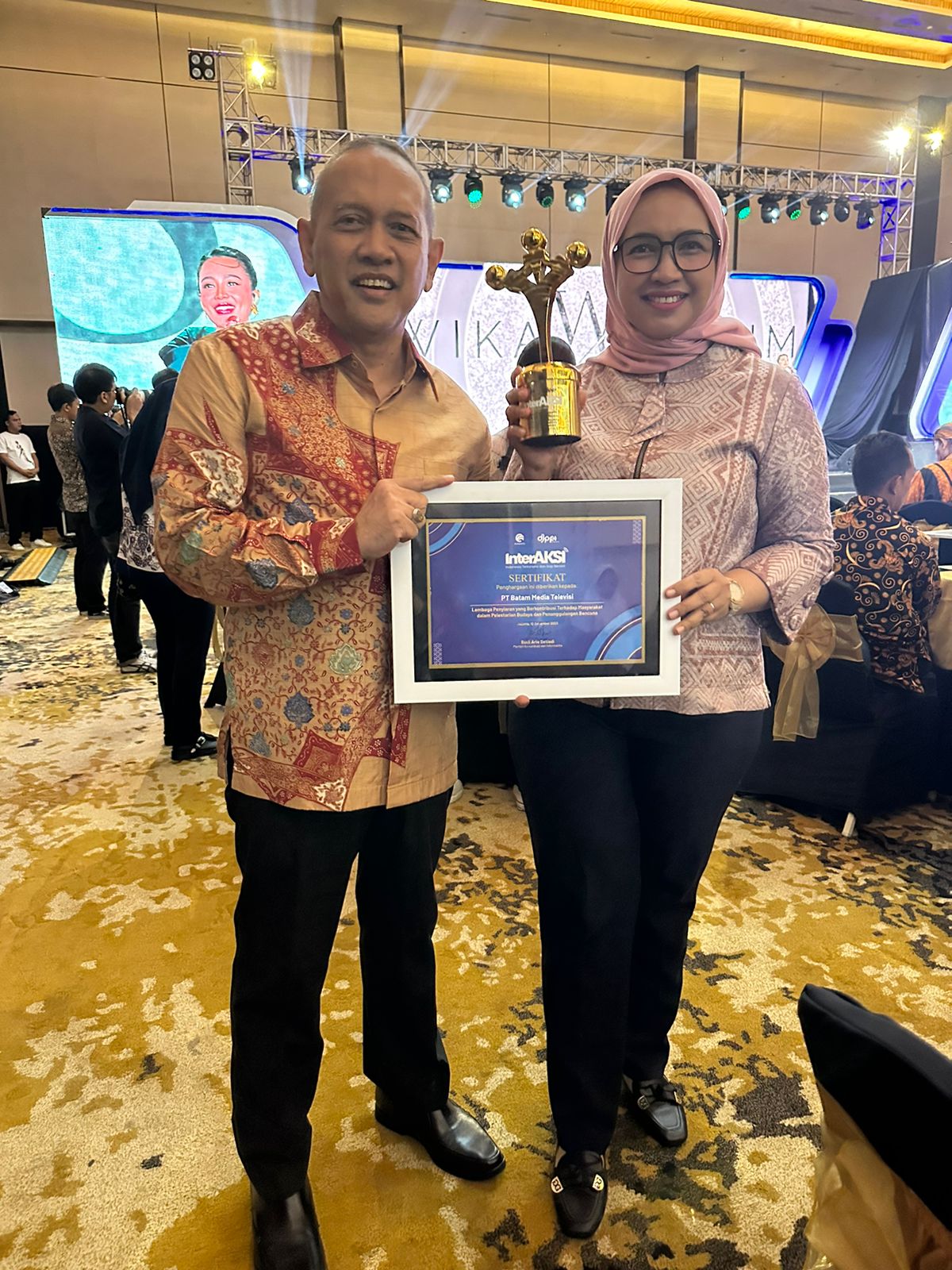 Pemberian penghargaan itu diterima langsung di Jakarta oleh Direktur PT Batam Media Televisi, Rini Elvina pada Selasa (12/12/2023). Mewakili seluruh pimpinan dan manajemen, Rini Elvina mengucapkan terima kasih dan apresiasi yang sebesar-besarnya kepada kementerian yang telah memberikan penghargaan ini secara langsung kepada Batam Televisi atas prestasi yang telah diraih tersebut.