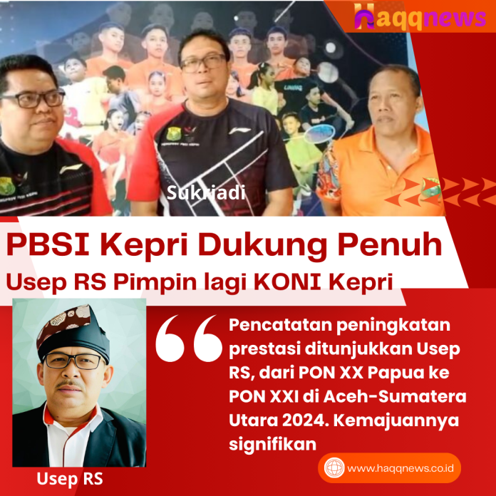 Batam, Haqqnews.co.id – Dukungan kepada sosok Usep RS untuk memimpin kembali Komite Olahraga Nasional Indonesia (KONI) Provinsi Kepri terus menguat. Salah satunya datang dari Pengurus Provinsi (Pengprov) Persatuan Bulutangkis Seluruh Indonesia Provinsi Kepulauan Riau (PBSI Kepri).