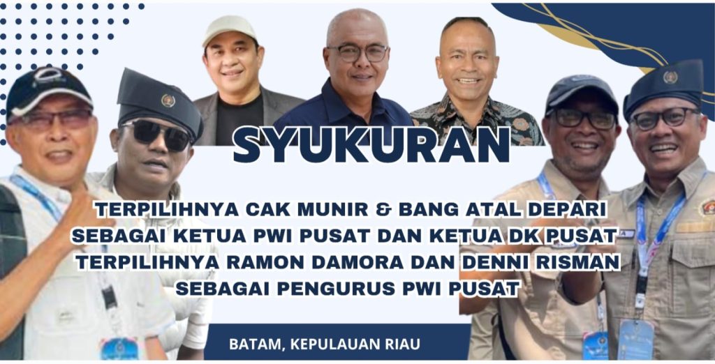 Haqqnews.co.id – Persatuan Wartawan Indonesia (PWI) Kepulauan Riau (Kepri) menggelar syukuran sederhana atas terpilihnya Akhmad Munir yang akrab disapa Cak Munir sebagai Ketua PWI Pusat dan Atal S. Depari sebagai Ketua Dewan Kehormatan (DK) PWI Pusat periode 2025–2030.