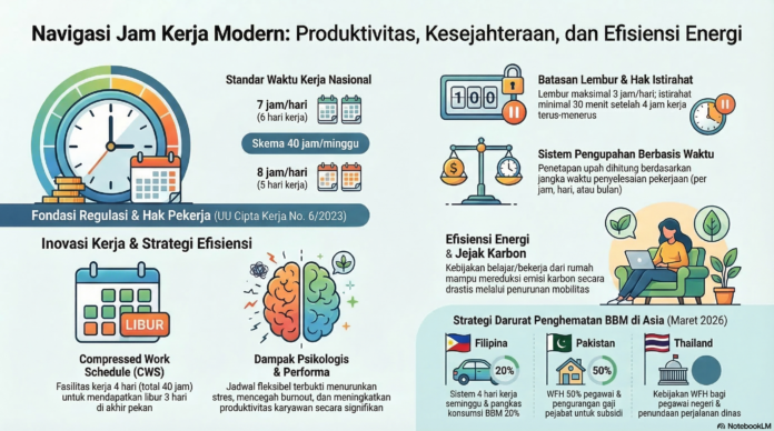 Dalam Sidang Kabinet Paripurna di Istana Negara, Jumat (13/3/2026), Presiden menekankan bahwa Indonesia harus proaktif melakukan penghematan konsumsi energi agar defisit APBN tetap terjaga. Merujuk pada kebijakan di Pakistan, yang telah menerapkan sistem WFH bagi 50 persen pegawainya dan memangkas hari kerja menjadi empat hari dalam sepekan sebagai langkah kritis menghadapi krisis energi.